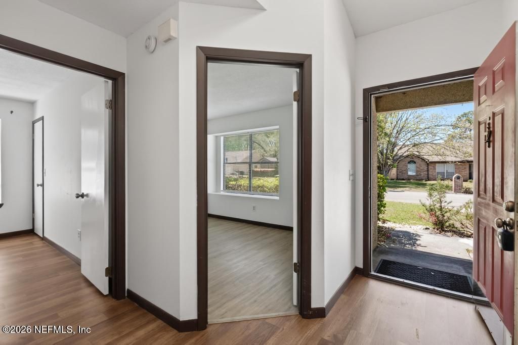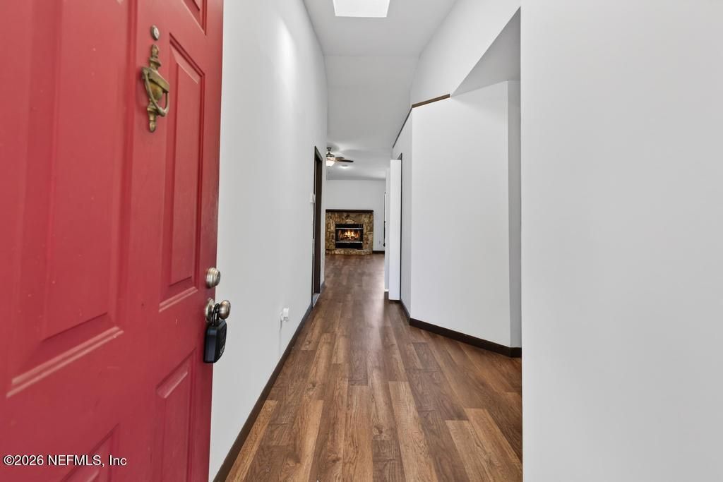 Single family 3 bedroom, 2 bathroom home for rent in Mandarin. Open floor plan with stone fireplace in the living room. No carpet anywhere in this home! Good sized Primary Bedroom with tiled walk in shower. Granite countertops in the well equipped kitchen. Screened-in patio with large enclosed backyard. Pet friendly with owner approval. New washer & dryer are left as courtesy items.. Tenant is responsible for lawn maintenance. No guarantors or co-signers permitted.