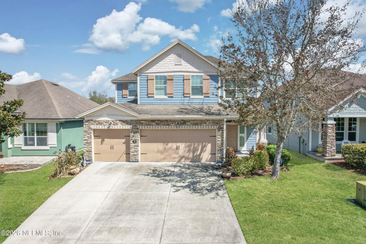 Experience the ultimate Nocatee lifestyle in this immaculate home located in the desirable Greenleaf Village. This open-concept masterpiece features a first-floor primary suite boasting a spacious walk-in closet and a spa-like bath with a garden tub and dual vanities. The gourmet kitchen is a chef's dream with dark wood cabinetry, granite countertops, a massive island, gas cooking, and a reverse osmosis system. Upstairs, discover 3 additional bedrooms and a generous loft. Recent upgrades include dual AC units, a 3-car garage, and a vinyl-fenced yard. Step outside to your private oasis: a screened patio with a hot tub and a secondary patio with a basketball hoop. As a bonus, the massage chair, king bed, and outdoor furniture can stay! Walk to A+ rated Valley Ridge Academy and enjoy world-class amenities like splash parks, trails, and dog parks in this golf-cart-friendly community. This turnkey gem blends luxury, comfort, and convenience in the heart of St. Johns County.