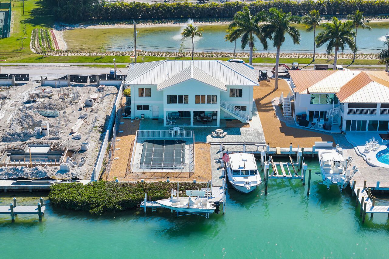 FABULOUS OPEN WATER VIEW OF SHELTER BAY, BOAT SLIP PLUS TWO BOAT LIFTS make this 5 bedroom 3 bath home with a pool a wonderful Fabulous Florida Keys experience. Enjoy the view, and the lovely Sun Porch, the waterfront with easy boating access, the pool, very near the Par 3 Golf Course, and other City Of Key Colony Beach amenities. High ceilings in the living space increase the spacious feel, the split bedroom plan for the upstairs and two additional bedrooms down. There are two separate garages and an elevator. The outdoor patios provide plenty of seating and lounging room for you and your guests.